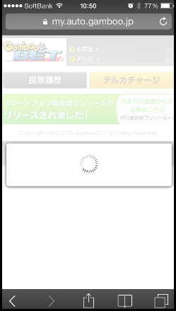 ■読み込み中の画面 「プライベートブラウズ」の設定が 「オン」のまま、GambooBETオートレースの購入画面を開くと、 右図のように、 画面が読み込み中のままになってしまいます。 |