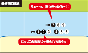 ※1 先行ラインの真後の位置(4番手あたり)を先行していないライン同士で奪いあう状態。