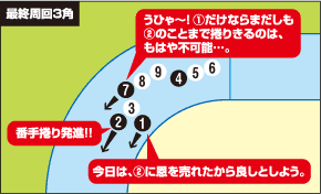 だから先行しているラインが他のラインより格下だったとしても、勝てる可能性は充分あります。333バンクでは、先行ライン有利です!