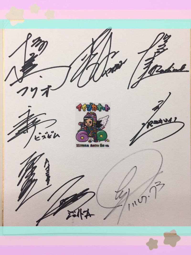 各選手のサインの中央に飯塚オートレースヴィーナスの「AKIちゃん」の記念イラスト付き☆