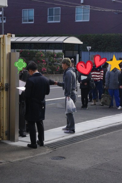門の前には選手の入り待ちのファンがたくさん!