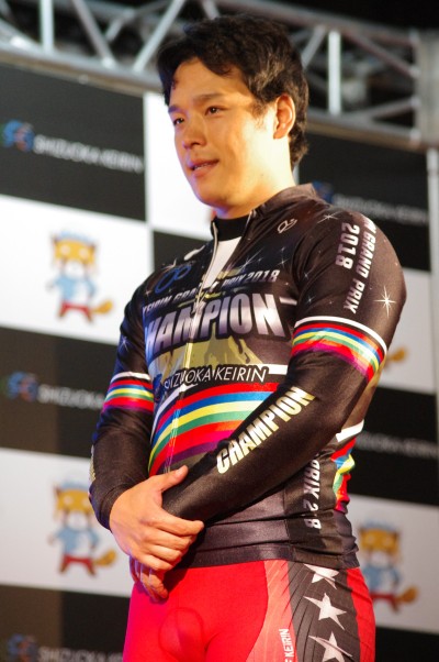 オリンピック出場を目指し、ナショナルチームにも参加している新田 祐大選手や脇本 雄太選手は日の丸を使った撮影が行われていました。