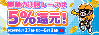 競輪の決勝レースはもれなく5%還元!(4/27~5/3)