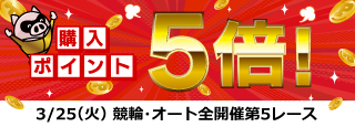 全開催第5レース購入ポイント5倍!(3/25)