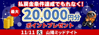 払戻金条件達成で最大20,000円分のポイントプレゼント(11/11)