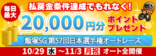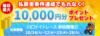 川口オート単独開催の日は払戻金条件達成で毎日最大10,000円分のポイントプレゼント
