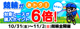 競輪がおトク!対象レースがもれなく購入ポイント6倍!(10/31~11/2)