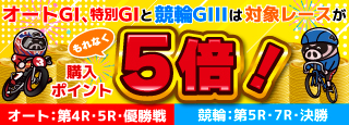 オートGI・特別GIと競輪GIIIは対象レースがもれなく購入ポイント5倍!(9月)