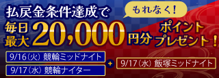 払戻金条件達成で最大20,000円分のポイントプレゼント(9/16・9/17)