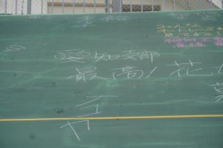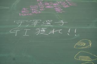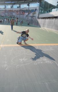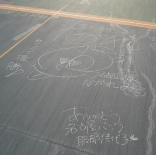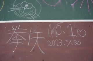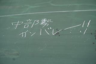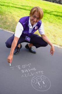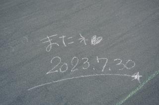 配布されたチョークを持ってバンクに自由に絵やメッセージを書きました