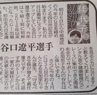 中日スポーツのコラムにも