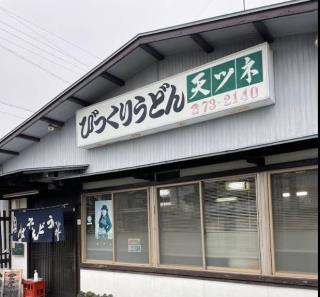 正面入り口を出て364号線に出て右側にコンビニがあります。その横の路地を進むと「びっくりうどん天ツネ」さんが