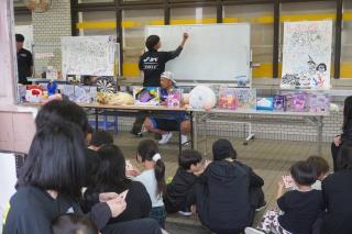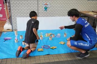 射的に輪投げ、ボーリングにお絵描きコーナーで選手の皆さんが