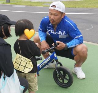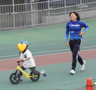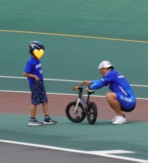 自転車で颯爽とバンクを駆け巡るお友達の姿を目で追っているお子さんを見つけると