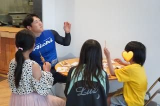 子供達の昼食は選手の皆さんがバーベキューを用意したり