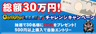 年末開催でGambooBETをはじめてみよう! GambooBETではチャレンジキャンペーンとして、抽選で30名様に1万円をプレゼント! 【対象開催】 12/28(土)~12/30(月)「KEIRINグランプリ2013シリーズ(立川)」(競輪) 12/27(金)~12/31(火)「スーパースターフェスタ2013(川口)」(オートレース) 詳しくはこちら