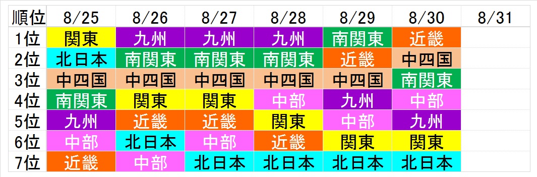 南関東が3位に転落してしまいました。