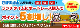 ランチタイムにオートレース購入でポイント5割増し!