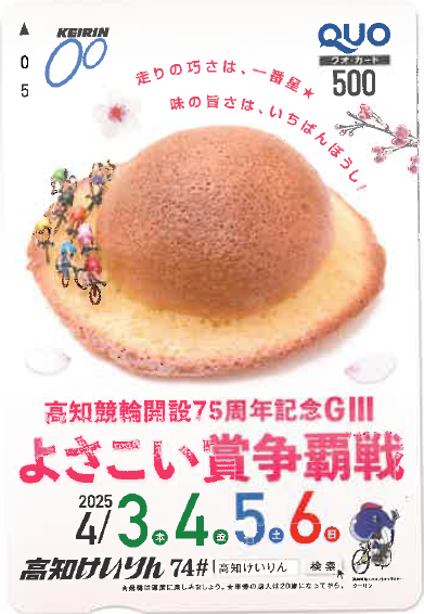 競輪電話投票(KEIRIN.JP)またはGambooBETにて、対象開催の車券を5,000円以上購入した方の中から抽選で10名様に高知GIIIオリジナルクオカードをプレゼント!