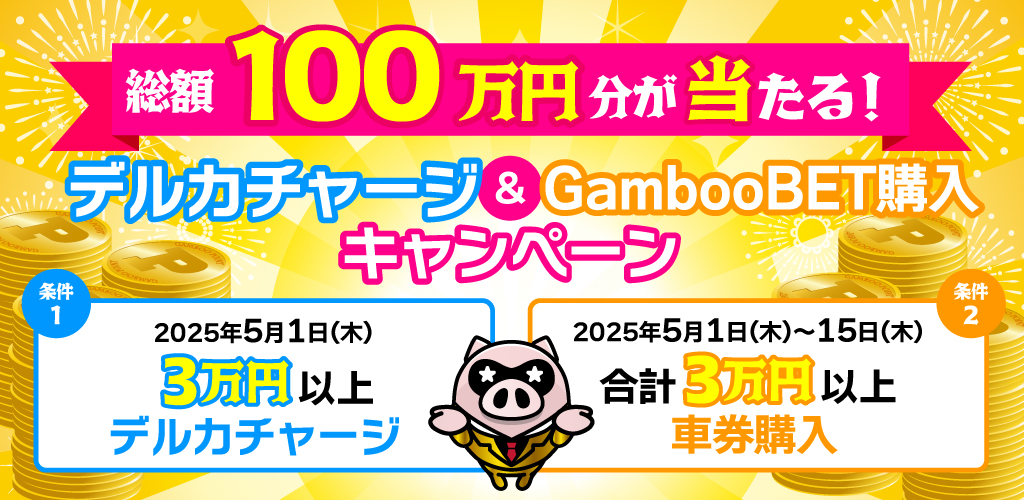 総額100万円分が当たる!デルカチャージ&GambooBET購入キャンペーン(5月)